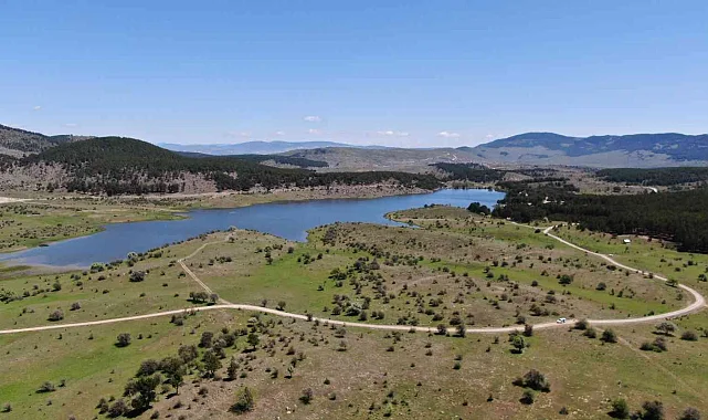 Kesin korunacak hassas alan ilan edilen Sorgun Yaylası Doğal Sit Alanı'nda yeşille mavinin bir araya gelmesi havadan görüntülendi.