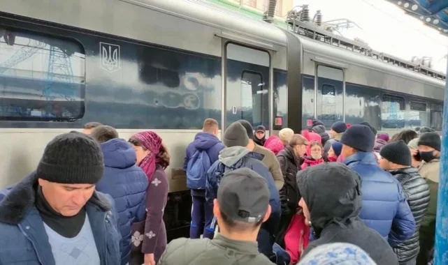 Ukrayna'nın başkenti Kiev'de, Rusya Savunma Bakanlığı'nın başkentteki bazı noktaları vuracağını duyurmasının ardından Kiev halkı kentten kaçmak için tren istasyonlarında izdihama neden oldu.