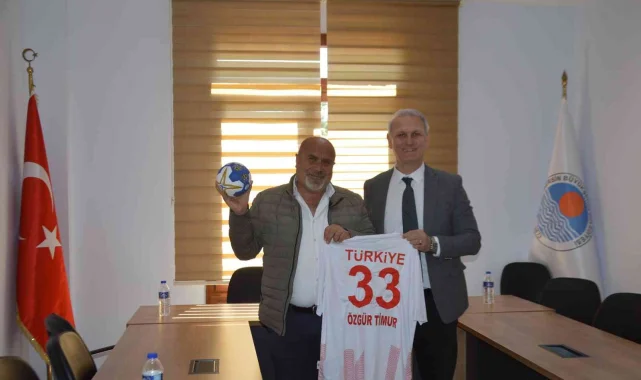 Başkan Kılıç, MSK Başkanı Özgür Timur ve Mersin İdmanyurdu Spor Kulübü Hentbol Şube Başkanı Abdullah Öztürkmen'e Türkiye Hentbol Milli Takımı forması ve hentbol topu hediye etti.