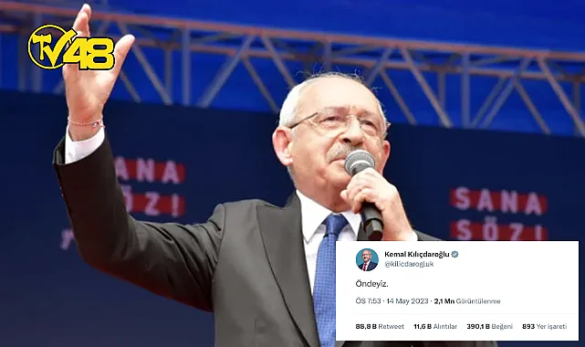 Kemal Kılıçdaroğlu, Twitter hesabından "öndeyiz." diyerek paylaşımda bulundu.