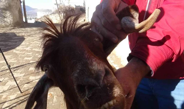 Kilis'in Süngütepe (Bavuk) köyünde hayvancılıkla uğraşan 43 yaşındaki Recep Sarıkurt, 10 yaşındaki keçisinin kulağının içerisinden boynuz çıktığını, boynuzun kulağı geçtiğini fark etti.