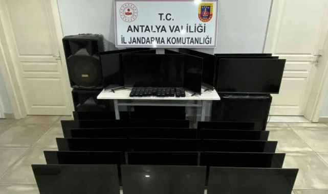 Antalya'nın Manavgat ilçesinde kiraladığı otelin demirbaşlarını çaldığı gerekçesiyle 1 şüpheli gözaltına alındı. Şüphelinin evinde yapılan aramada çok sayıda televizyon, ses kolonu, spot ışık, ahşap masa ve sandalyeler ele geçirildi.