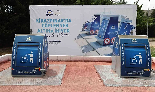 Gebze'de çöp konteynırlarının yer altına alınması çalışmaları çerçevesinde Kirazpınar Emlak Konutlarında 32 yer altı çaça sistemi devreye alındı.