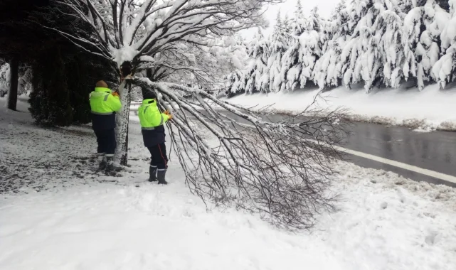 Kocaeli Büyükşehir Belediyesi, etkili olan yoğun kar yağışı sonrasında kırılan ağaç dallarını toplayarak kazaların önüne geçiyor.