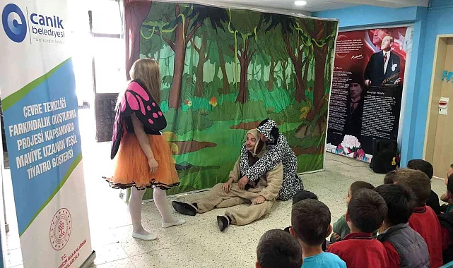 Canik Belediyesi, sosyal sorumluluk projesi kapsamında ilçedeki kırsal mahalle okullarında çevre temizliğini konu alan tiyatro oyunu sahneledi.