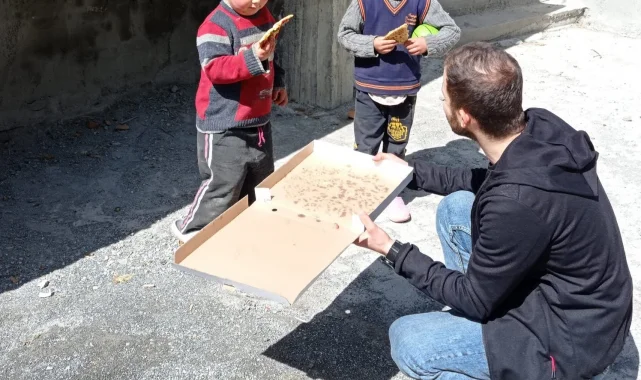 Köylerde pasta ve pizza yemeyen çocuklar kalmasın diyerek yola çıktıklarını belirten gönüllüler," Kırsal kesimde yaşayan çocuklarımıza pasta ve pizza sürprizi yapmak için yola çıktık.Onlar mutlu olsun diye köy köy gezerek çocuklara pasta ve pizza dağıtımı yaptık. Çocuklar çok mutlu oldular. İyilik kazanacak diyerek çıktığımız bu yolda çocuklara sürprizlerimiz devam edecek" dedi.