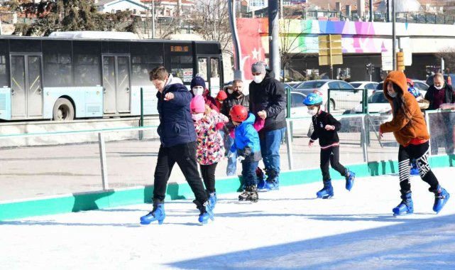 Mamak Belediyesi'nin hizmete sunduğu buz pateni pisti yoğun ilgi görüyor. Şehit İsmail Kılıç Polis Merkezi Amirliği'nin yanına kurulan ve uluslararası federasyonlarca kabul görülen standartlara sahip 420 metrekarelik pisti çocuklarıyla birlikte ziyaret eden aileler, buz pateni yapmanın keyfini çıkarıyor.