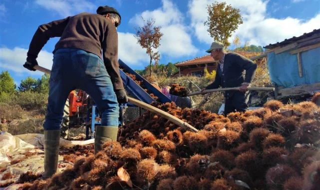 Denizli'nin Buldan ilçesinde bin bir zahmetle toplanan kestaneler, eğrelti otlarıyla örtülü kuyulardan çıkarılarak patoz işlemiyle dikenli kabuklarında ayrılmaya başladı. Geçen yıla oranla rekoltede düşüş olduğu gözlemlenen kestanenin kilo fiyatının ise 50 TL bandında olması bekleniyor.