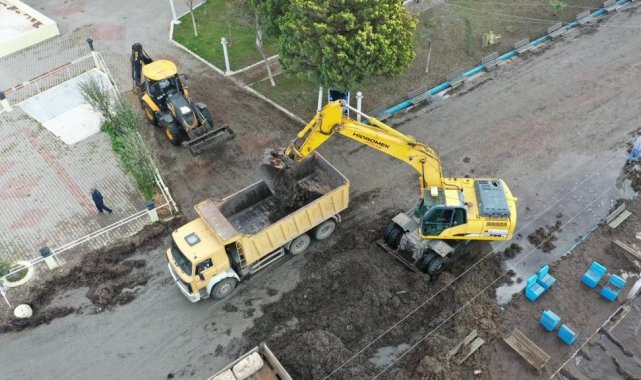 Didim Belediyesi Fen İşleri Müdürlüğü ve Temizlik İşleri Müdürlüğü ekiplerinin ortaklaşa çalışması sonucu belediyeye ait iş makineleri yardımıyla sahildeki pislik ve yosunlar temizlendi.