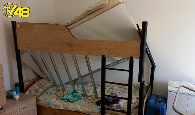 Muğla Şahidi Kız Öğrenci KYK Yurdunda bazanın üst kısmı çöktü. Üst bölümde yatan öğrenci sıkıştı. Altta öğrenci olmaması büyük bir facianın yaşanmasına engel oldu.