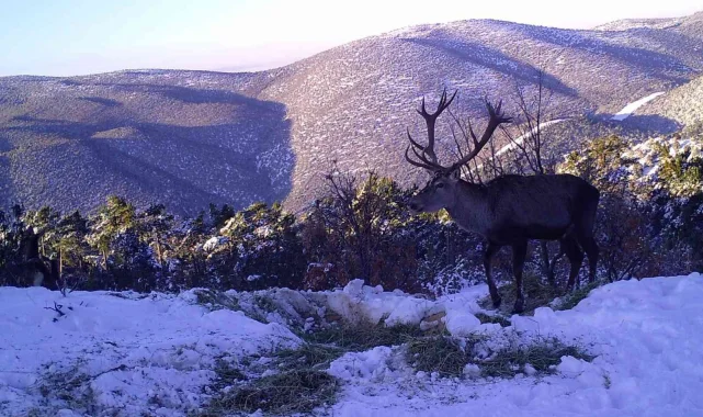 Belgeseli aratmayan görüntülerde kızıl geyiklerin dağın farklı bölgelerinden gelerek bırakılan yemleri yemeleri sanayi saniye kayıt altına alındı. Kar yağışı ile birlikte soğuk havalanın etkili olduğu bölgelerde yemleme çalışmasında birçok ekip görev aldı.