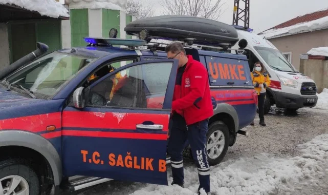 Zonguldak'ta UMKE ekipleri, kardan yolu kapanan mahallede rahatsızlanan KOAH hastası olan 89 yaşındaki Aysel Çelik'in imdadına yetişti. Zonguldak'ta yoğun kar yağışı sonrası kaplı olan köy ve mahallelerde kar temizleme çalışmaları devam ediyor. İnağzı Mahallesinde ikamet eden 89 yaşındaki KOAH hastası Aysel Çelik fenalaştı. Olay yerine ulaşan UMKE ekipleri 89 yaşındaki Aysel Çelik'i alarak ambulansa ulaştırdı. Ambulansta ilk müdahalesi yapılan Çelik, ambulansla Atatürk Devlet Hastanesine kaldırıldı.