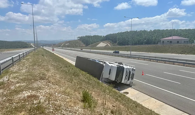 Kuzey Marmara Otoyolu'nun Kocaeli geçişinde devrilen tırın sürücüsü kazayı yara almadan atlattı.