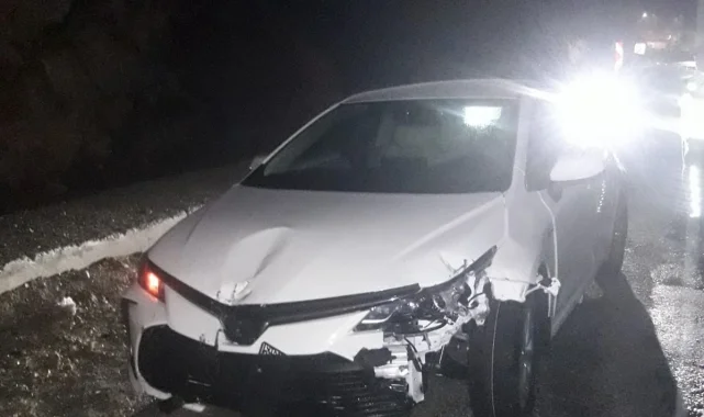 Adıyaman-Malatya karayolunda sürücüsünün direksiyon hakimiyetini kaybettiği otomobil bariyerlere çarparak durabildi.