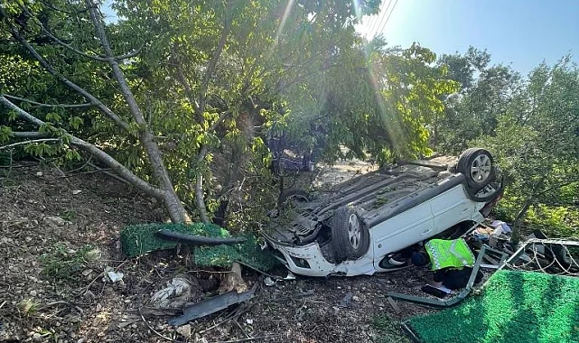 Bursa'da seyir halindeki iken sürücüsünün direksiyon hakimiyetini kaybettiği otomobil şarampole uçtu. Sürücü hafif yaralandı.