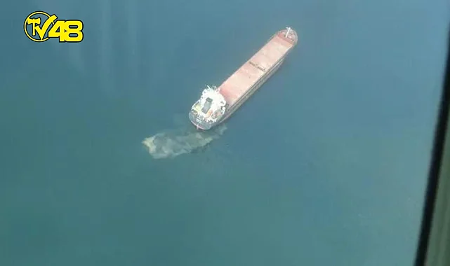 Kocaeli Büyükşehir Belediyesi'nce uçakla yapılan denetimlerde, Körfez ilçesi Yarımca Demiryeri açıklarındaki geminin, atıklarını denize boşattığı tespit edildi.