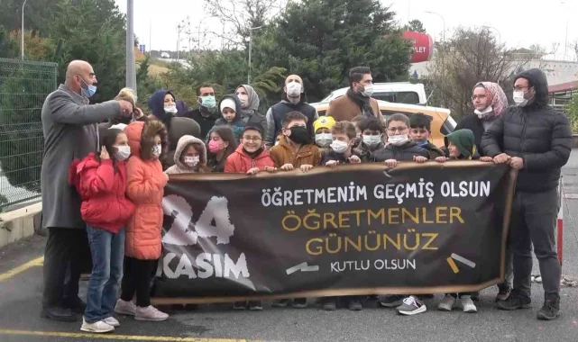 Arnavutköy'de hastane bahçesinde toplanan öğrenciler, koronavirüs tedavisi gören öğretmenlerinin Öğretmenler Günü'nü açtıkları pankartla kutladı. Soğuk havaya aldırmadan hastane bahçesine gelen öğrenciler, görüntülü konuştukları öğretmenlerini duygulandırdı.
