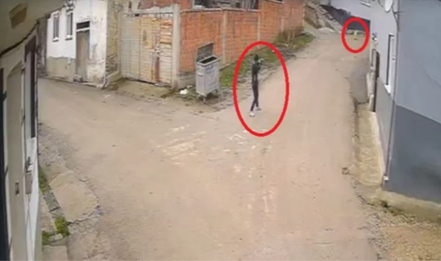 Sokak köpeğini belli bir süre kovalayan şahıs, mahalle arasında görüş açısına giren hayvana nişan aldı.