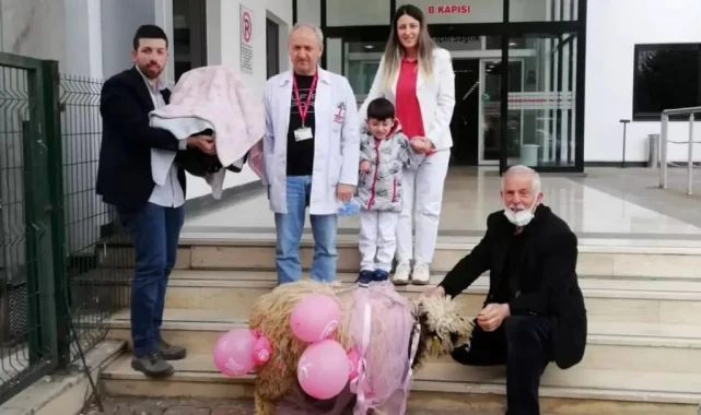 Nisan bebeğin dedesi Resul Serdar, torunun sağlıkla taburcu edilmesi üzerine sevincini hastane önüne pembe kurdelelerle süslediği bir koç getirerek gösterdi. Koç hastane önünde renkli görüntülere sahne oldu.