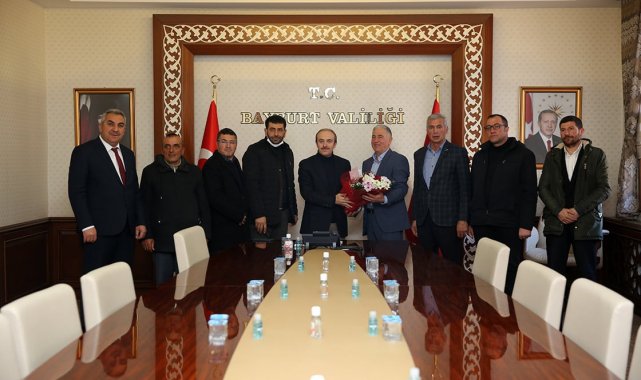 Bayburt'ta bir grup köy muhtarı Vali Cüneyt Epcim'e teşekkür ziyaretinde bulundu.