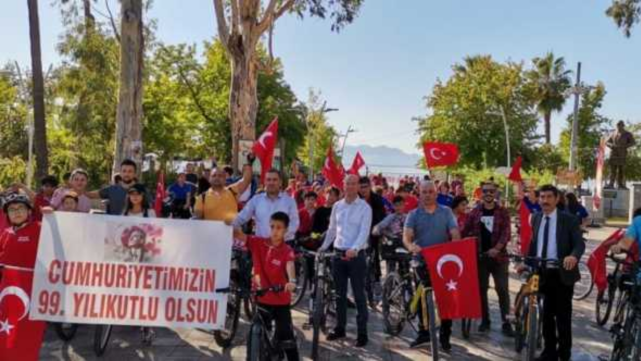 Köyceğiz'de, Cumhuriyet Bayramı kutlamaları için bir dizi etkinlik planlandı. 29 Ekim Cumhuriyet Bayramı etkinlikleri çerçevesinde, Cumhuriyetimizin 99. yıl dönümü sebebiyle bisiklet turu etkinliği yapıldı. Bisikletli vatandaşlar Belediye binası yanında toplandı. Bisikletlilere Köyceğiz Belediye Başkanlığı tarafından Türk Bayrağı dağıtıldı. Bisiklet turu etkinliğine katılan bisikletçiler Kaymakamlık önünden Atatürk Kordonu'na çıktı. Kordondan Deltaya kadar ve oradan geriye dönen bisikletçiler Kaymakamlık binası önünde etkinliği tamamladı. Etkinliğe Köyceğiz Kaymakamı Mustafa Maslak, Köyceğiz Belediye Başkan Yardımcısı Metin Yerlikaya, Köyceğiz İlçe Milli Eğitim Müdürü Kerem Karahan, Köyceğiz Gençlik ve Spor İlçe Müdürü Mehmet Kaleli, okul/kurum Müdürleri, öğretmenler, öğrenciler ve vatandaşlar katıldı.