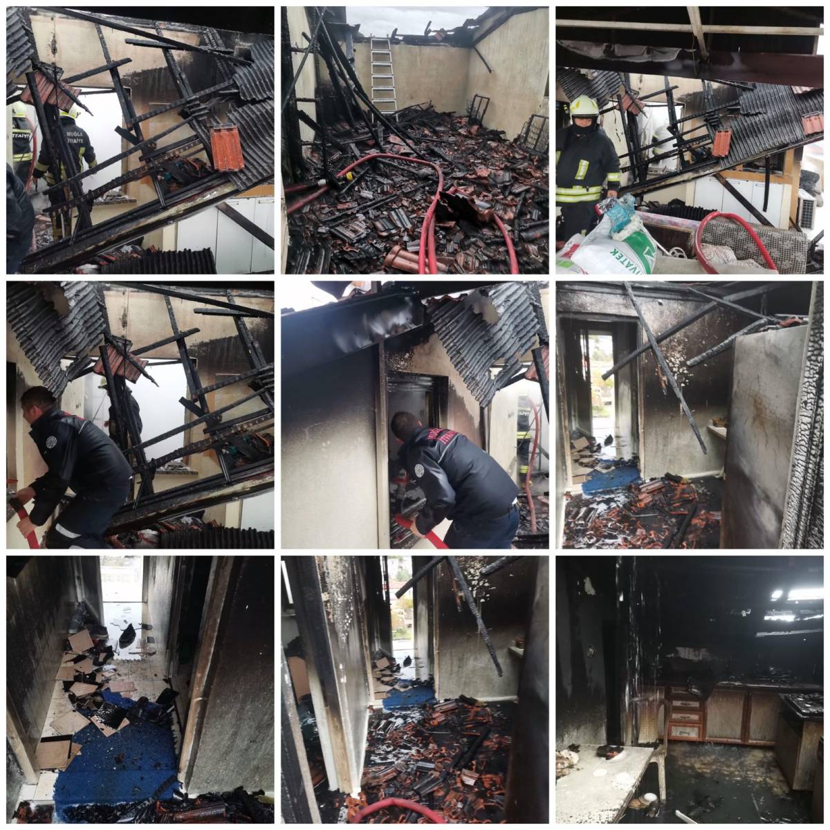 Yangın esnasında konutta mahsur kalan vatandaş kurtarılarak acil sağlık ekiplerine teslim edilirken, binanın çatısı, evin tüm odaları ve eşyaları tamamen yanarak zarar gördü.