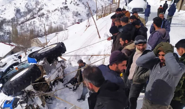 Adıyaman'ın Çelikhan ilçesinde traktör ile kar temizlemeye çalışırken şarampole düşen traktörü köylüler el birliği ile kurtardı, ortaya ilginç bir görüntü çıktı.