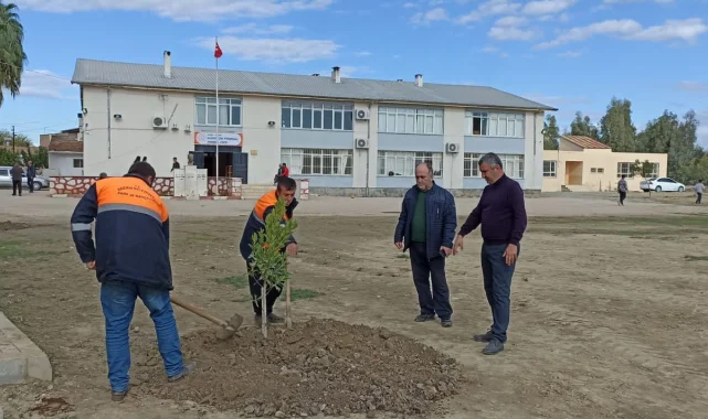 Kozan'da okul bahçesine fidan dikildi peyzaj çalışması yapıldı