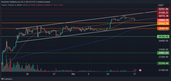 Orta bandın altına gelmesi durumunda Bitcoin önce 29.350$ ardından ise kanalın alt bandı olan 28.500$ seviyelerine geri çekilme yaşanabilir. Yukarıda ise 30.000$’ın üzerinde kalıcılık sağlanması ve 30.700$ seviyelerine hareket edilmesi Bitcoin fiyatı açısından kısa vadede destekleyici olacaktır.