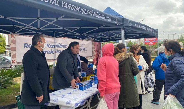 Kuşadası Belediyesi, Regaip Kandili nedeniyle Kaya Şavkay Meydanı'nda vatandaşlara kandil simidi ikramında bulundu.