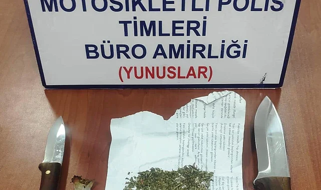 Kütahya'da Motosikletli Polis Timlerince içerisinde 3 kişinin bulunduğu araçta yapılan aramada, 3.25 gram bonzai, 1.83 gram tütünle karıştırılmış bonzai ve 2 kesici alet ele geçirildi.