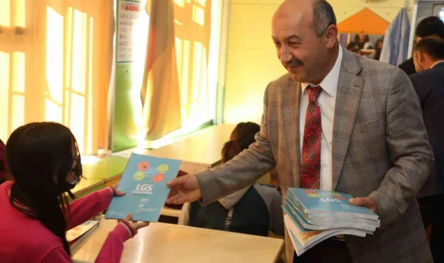 İl Milli Eğitim Müdürü Hasan Başyiğit, Şube Müdürü Mustafa Topuz ve Şube Müdürü Zeki Atik, Linyit Ortaokulunda 8. sınıf öğrencilerine, yardımcı kaynak destek paketlerinin dağıtımını gerçekleştirdiler. İl Milli Eğitim Müdürü Hasan Başyiğit, 8. sınıf öğrencilerine LGS sınavı için örnek soruların yer aldığı bu kitapçıklardaki soruları çözmelerini tavsiye etti.