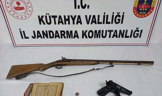 Kütahya Merkez ve Aslanapa ilçelerinde jandarmanın yaptığı operasyonlarda 1 adet el yazması Kuran-ı Kerim, Osmanlı döneminden kalma olduğu değerlendirilen 1 adet tarihi av tüfeği ve 1 adet gümüş sikke ele geçirildi. 5 şüpheli gözaltına alındı.