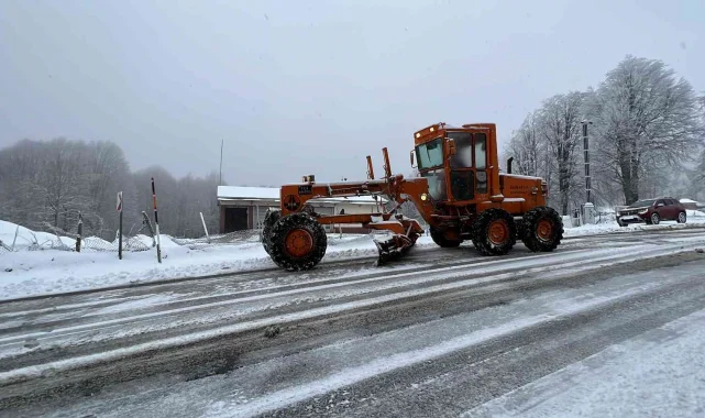 Karayolları ekipleri kar küreme araçları ve greyderlerle yolu açık tutabilmek için çalışmalarını sürdürüyor.