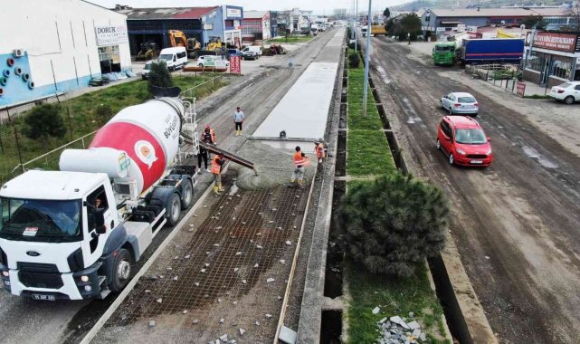 Samsun Büyükşehir Belediyesi, Tekkeköy ilçesinde 3 sanayi bölgesini birbirine bağlayan Kutlukent Bulvarı'nı 4 kilometrelik beton yolla yeniliyor.