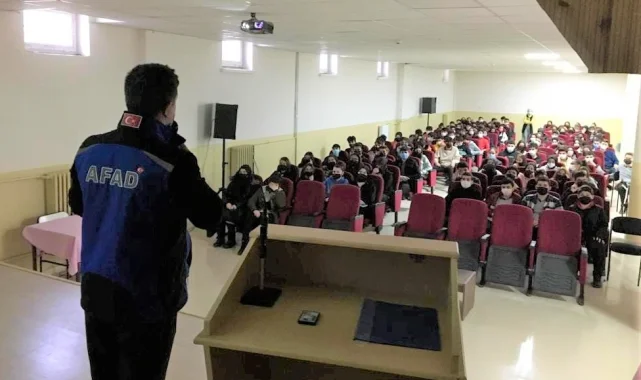 Erzincan Afet ve Acil Durum Müdürlüğü (AFAD) ekipleri, lise öğrencilerine 'Afet Farkındalık ve Afet Gönüllülük Sistemi' bilgilendirmesi eğitimi vererek farkındalık oluşturuyor.