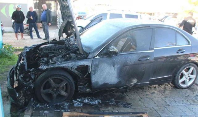 Lüks otomobil alev alev yandı