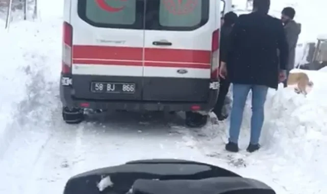 Sivas'ın Gürün ilçesinde hasta almaya giderken kapa saplanıp mahsur kalan ambulansın imdadına iş makineleri yetişti.