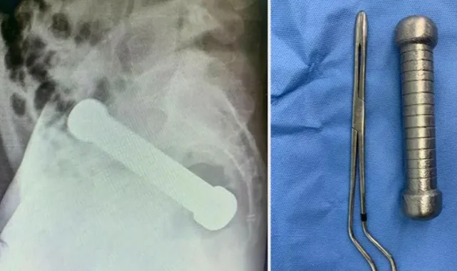 Doktorlar, yapılan röntgen görüntülemenin ardından adamın makatında, “seks oyuncağı gibi görünen” bir dambıl bulduklarını açıkladı.