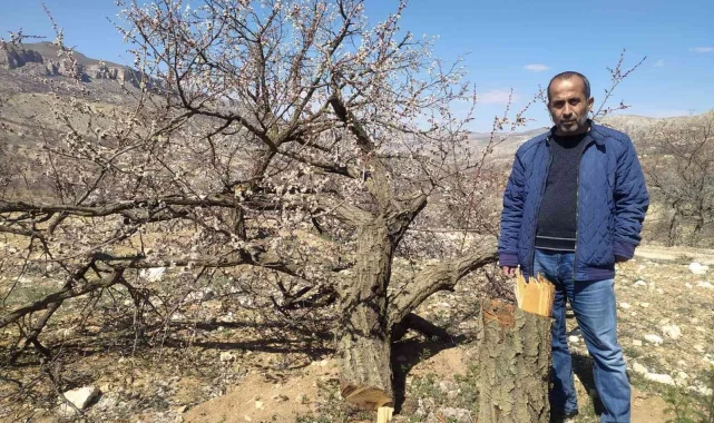 Malatya'nın Akçadağ ilçesine bağlı Sarıhacı köyünde yaşayan Kenan Kaya, bahçesini ilaçlamaya giderken hayatının şokunu yaşadı. Yaklaşık 40 yıllık kayısı ağaçlarının kimliği belirsiz kişi ve kişiler tarafından zarar gördüğünü belirten Kaya, suçluların tespit edilmesini ve mağduriyetinin giderilmesini istiyor.