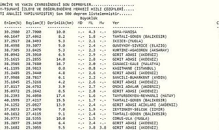 Saat 14.55'te merkez üssü Manisa'nın Soma ilçesi olan bir deprem meydana geldi. Kandilli Rasathanesi depremin büyüklüğünü 4.3 olarak duyurdu.