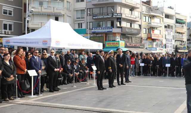 Marmaris Kaymakamlığınca Atatürk Meydanında düzenlenen törene; Marmaris Kaymakamı Ertuğ Şevket Aksoy, Marmaris Cumhuriyet Başsavcısı Turgay Karabulut, Aksaz Deniz Üs Komutanı Tuğamiral İbrahim Kurtuluş Sevinç, Marmaris Belediye Başkan Vekili Burak Demirtaş, AK Parti Marmaris İlçe Başkanı Ceyhun Gökmen, CHP Marmaris İlçe Başkanı Zekican Balcı, İYİ Parti Marmaris İlçe Başkanı Ali Toksoy, MHP Marmaris İlçe Başkanı Kemal Kalemci ve çok sayıda vatandaş katıldı.