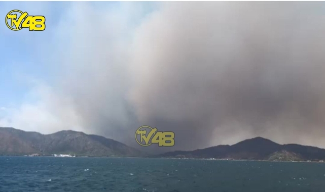 Kuzey hattına doğru ilerleyen yangın hala devam ediyor. Söndürme çalışmalarının devam ettiği bölgede ekipler yoğun çaba sarf ediyor. Hisarönü körfezinden kaydedilen bu görüntülerde yangın rüzgarın etkisiyle hala devam ediyor.