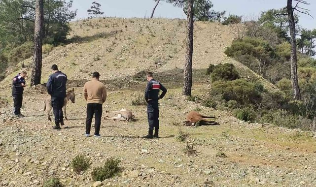 Muğla'nın Marmaris ilçesinde bir arazide iki eşek, tüfekle vurularak öldürülmüş halde bulundu.