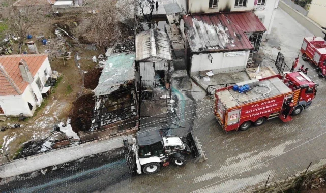 Aydın'ın Çine ilçesinde, Doğanyurt Tarım Kredi Kooperatifi'nde kaynak sırasında çıkan kıvılcımın mazot deposunu tutuşturması sonucu yangın çıktı. Alevler kısa sürede kontrol altına alınırken, yangın alanı drone ile havadan görüntülendi.