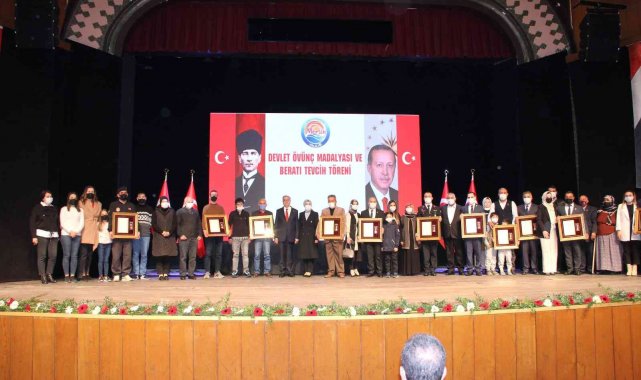 Vali Su, konuşmasının ardından 3 şehit ailesine ve 8 gaziye Devlet Övünç Madalyası ve Beratını verdi. Bazı şehit babaları ile gaziler, madalyalarını alırken duygusal anlar yaşadı.