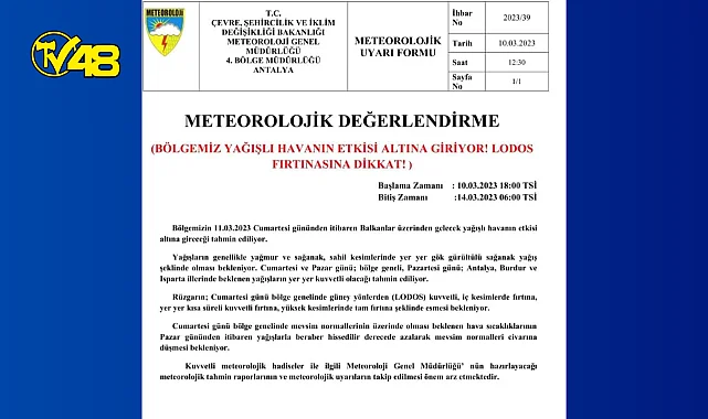 METEROLOJİ MUĞLA'NIN HAVA DURUMUNU DEĞERLENDİRDİ