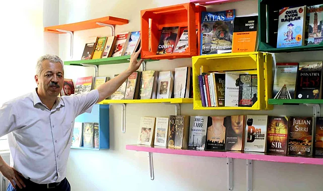 Yenişehir Halk Eğitim Merkezi'nde atık meyve kasası ve okunmuş kitaplardan örnek bir kitaplık oluşturuldu.