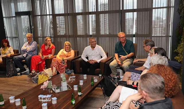 10. Uluslararası Soli Güneş Festivali için Mersin'e gelen Mezitli Belediyesi kardeş kenti Berlin Tempelhof-Schöneberg Belediye Başkanı Jorn Ottman ve beraberindeki heyet, Belediye Başkanı Neşet Tarhan'ı ziyaret etti.