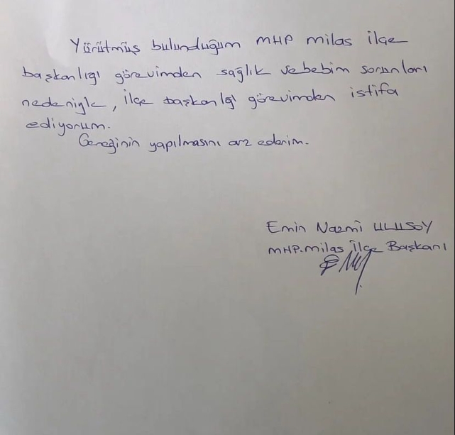 Yaklaşık 6 yıldır MHP Milas İlçe Başkanlığı görevinde bulunan Emin Nazmi Ünlüsoy, sağlık sorunları sebebiyle istifa etti. Ardından İlçe Kadın Kolları Başkanı Seferiye Baklacı'da görevinden istifa etti. yaklaşan seçimlerin öncesinde MHP kanadında verilen istifaların asıl gerekçesi merak konusu oldu.